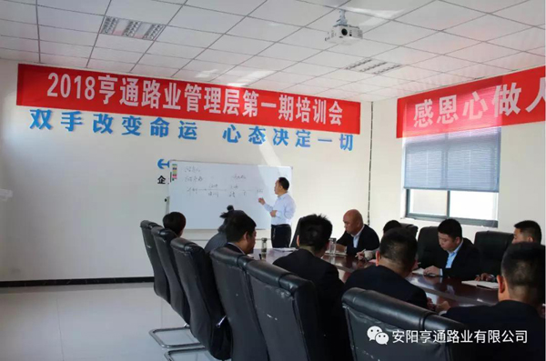 2018年4月18-20日,為加強(qiáng)公司管理隊(duì)伍建設(shè),增進(jìn)中層間的相互交流,培養(yǎng)鍛煉團(tuán)隊(duì)精神和協(xié)作意識(shí),亨通路業(yè)全體中層從天南地北各個(gè)項(xiàng)目返回公司集中開(kāi)展了為期三天的以“感恩心做人,責(zé)任心做事”為主題的專項(xiàng)培訓(xùn)活動(dòng)。